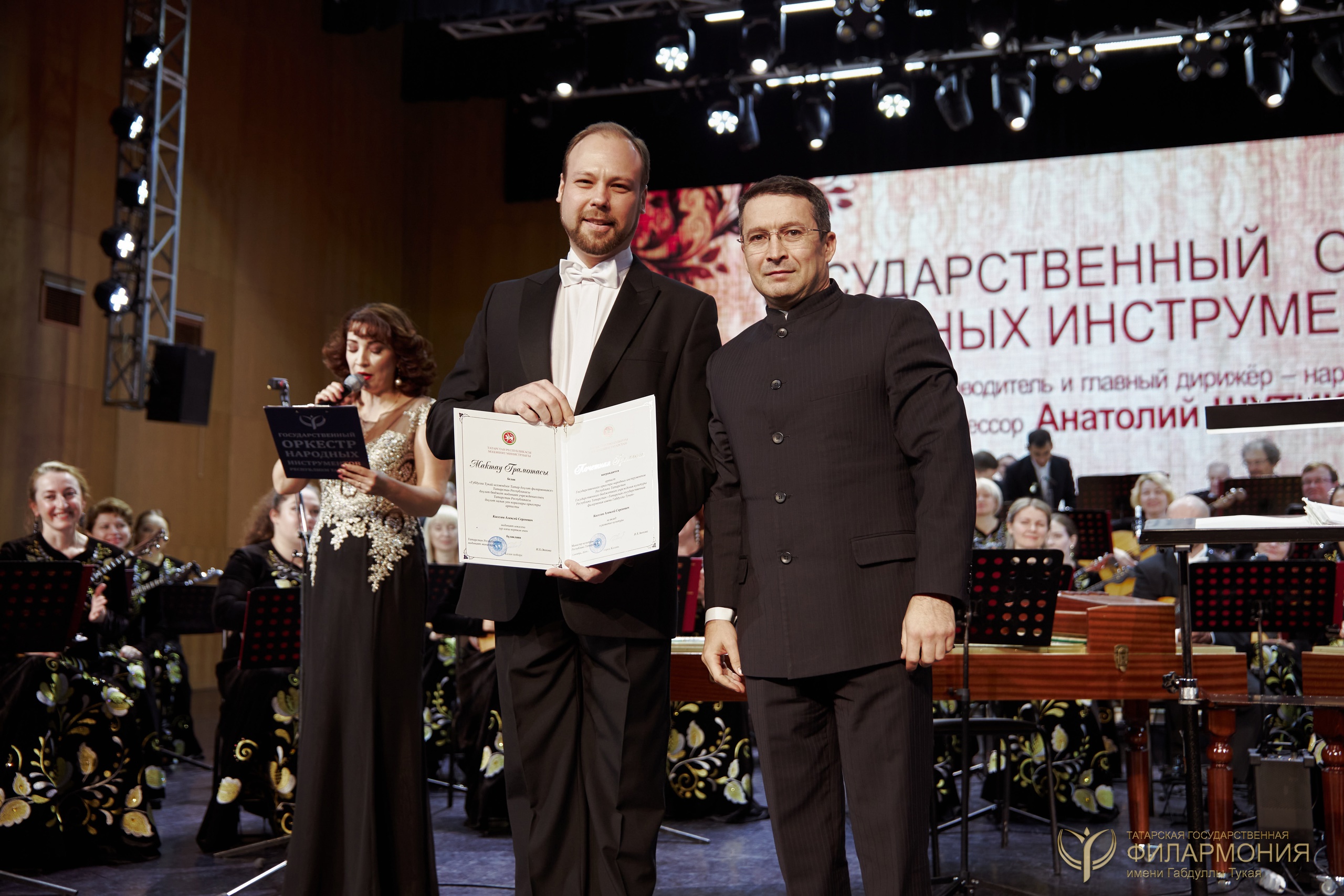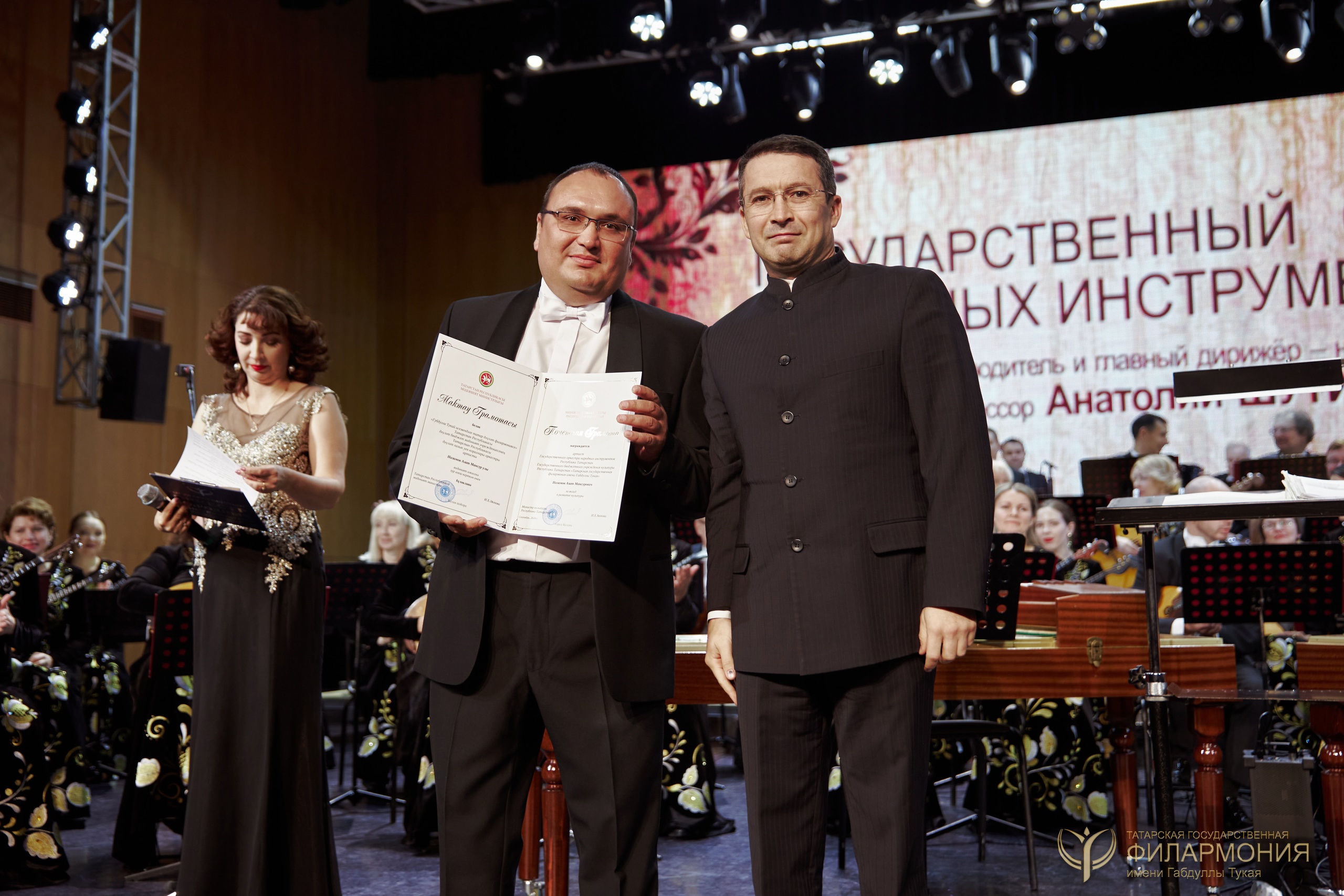 Сотрудники Татарской государственной филармонии имени Габдуллы Тукая удостоены высоких наград. И 26 сентября 2024 года на открытии нового концертного сезона их вручил заместитель министра культуры Республики Татарстан Натфуллин Дамир Данилович.